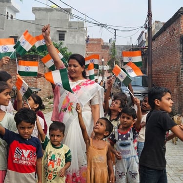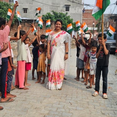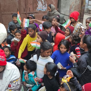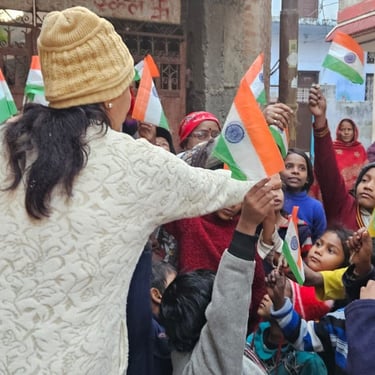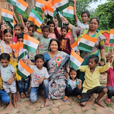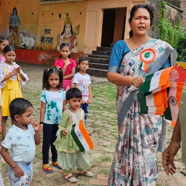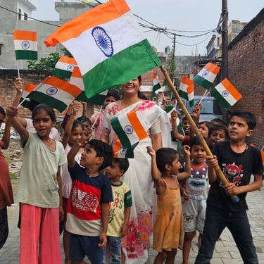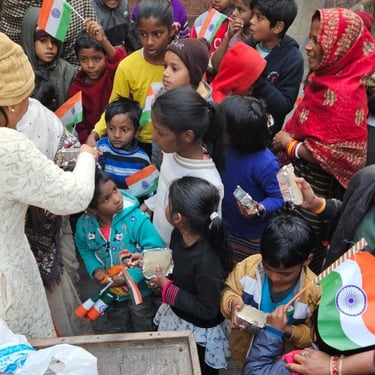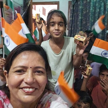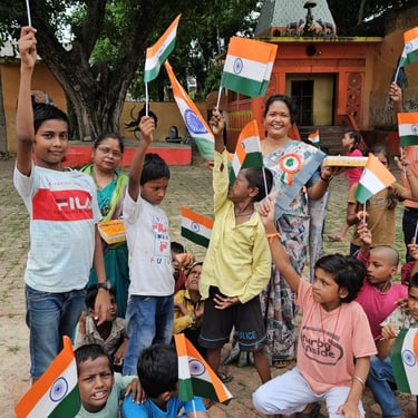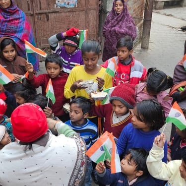 Independence Day was celebrated with underprivileged children to foster a sense of patriotism, joy, and inclusion. The celebration included simple activities and moments of togetherness to ensure children could experience the spirit of the national festival with pride and happiness.